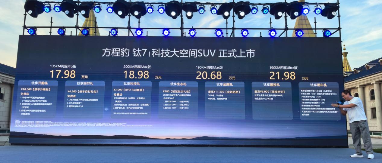 比亚迪方程豹钛7北京区域上市:定位大五座SUV 售价1798万元起