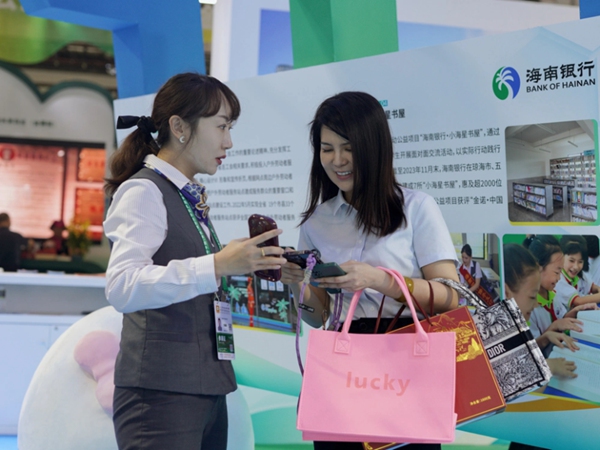 在磋商洽谈区,不时有现场展商及观展者交流对接;金融产品专区更是凭借现场智慧开卡、金融产品线下场景体验等特色服务,吸引了不少体验者。“在金融服务方面,我们重点展示了公司类涉农特色产品和普惠类特色产品,包括海南自贸港全域土地综合整治项目贷款、海洋经济建设贷款、渔丰贷、流动资金贷款、固定资产贷款、经营性物业贷款和小额农户贷款、琼科贷、海知贷、农保贷等12款产品。”海南银行工作人员解说道。